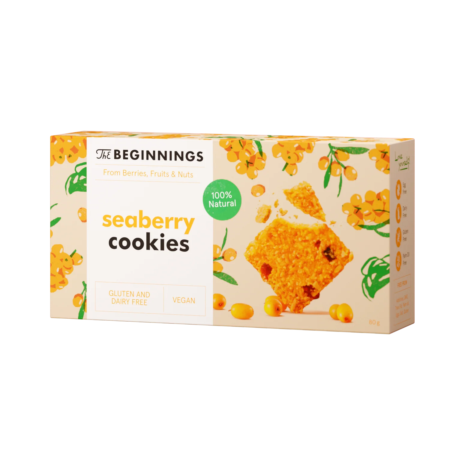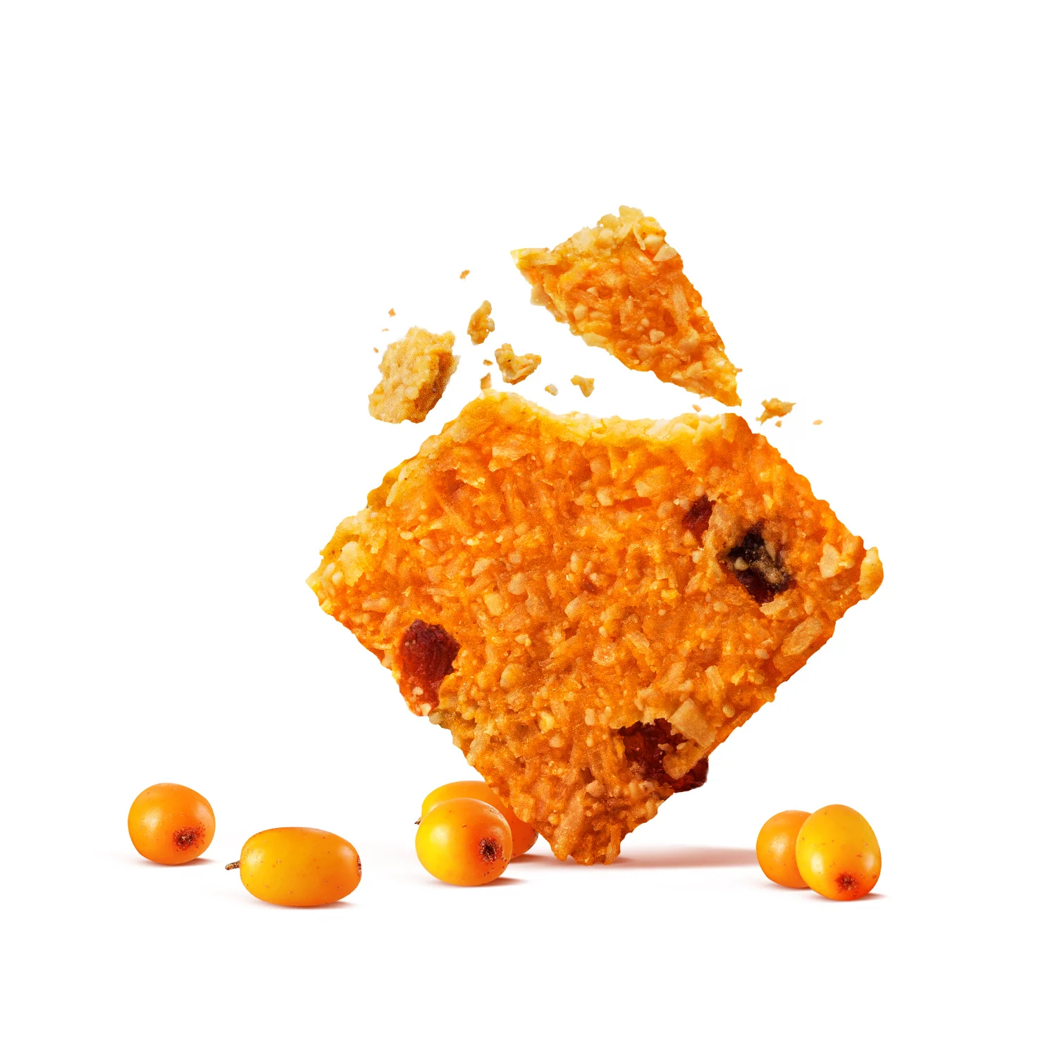 Täis vitamiine sisaldab see küpsis astelpajumahla ainulaadset headust, kombineerituna agaavi loomuliku magususega ja õunte peene maitsega. Krõmpsuvad kookoshelbed ja tervislikud india pähklid täiendavad seda kerget, värsket ja maitsvat maitseelamust.